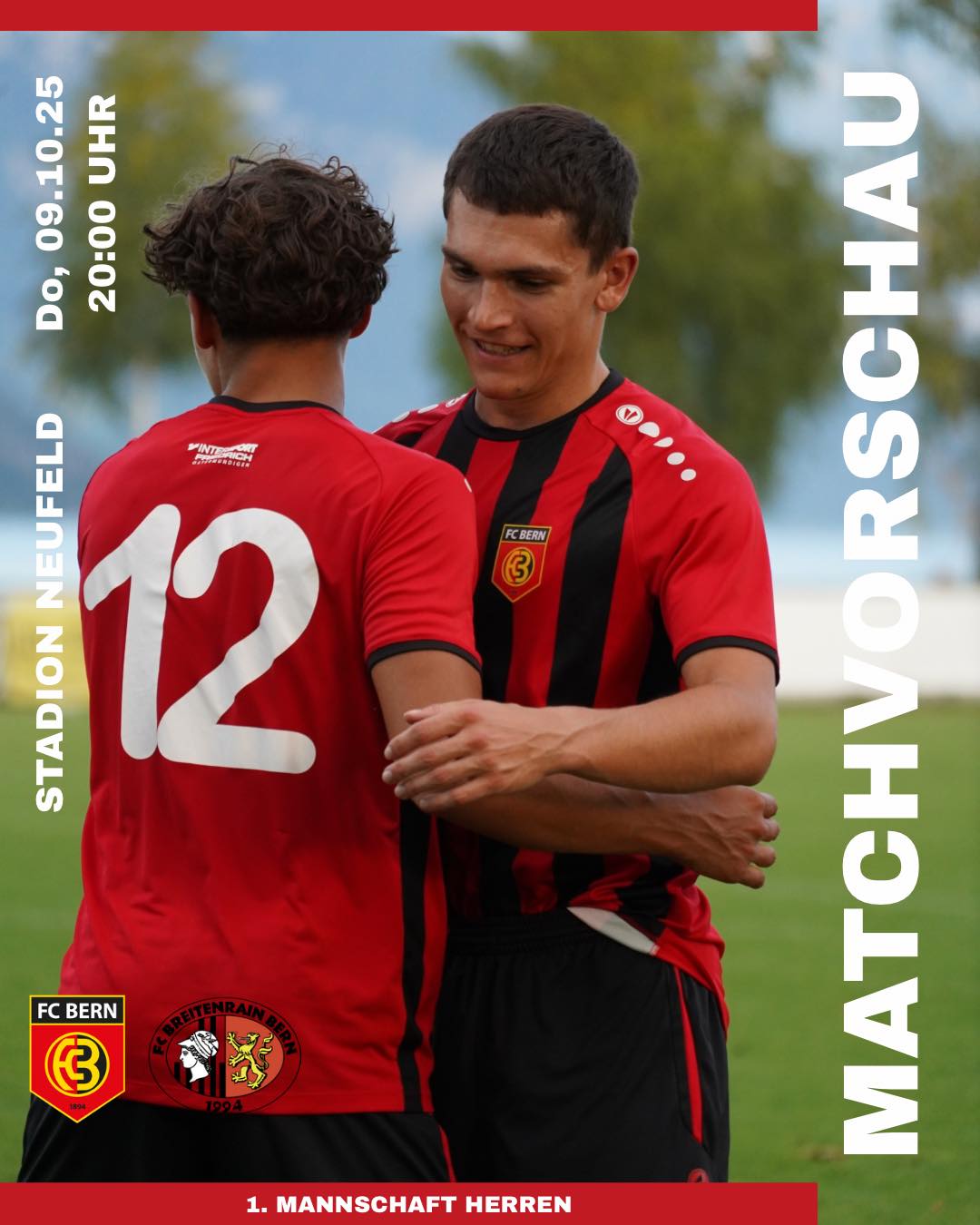 🔴 Reaktion zeigen ⚫️ Nach der Niederlage in Meiringen will die 1. Mannschaft der Herren bereits übermorgen im vorverschobenen Heimspiel gegen die 2. Mannschaft des FC Breitenrain eine Reaktion zeigen. 📅 Donnerstag, 09.10.25 ⏰ 20:00 Uhr 📍 Stadion Neufeld 🔴 HOPP BÄRN ⚫️ 📸: anna_r.12 #matchvorschau #fcbern1894 #heimspiel #hoppbärn #rotschwarz #neufeld